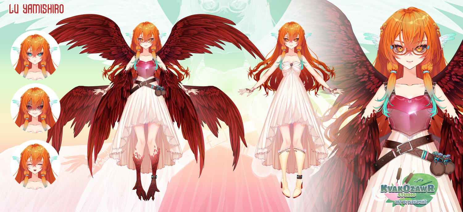 I am a harpy angel demigoddess VTuber, mother to a sword (and my Featherlites—my dear fans), sadodere and yandere, blood drinker, and master of all blade types.I live in another universe. Thanks to our world's advanced technology, we are able to communicate with and stream to you people on Earth and to other universes.I am also a writer, as seen on my VGen! Currently, I am building my portfolio with small personal projects (including a short story based on my own lore!), so I am not opening commissions and requests for some time. Whenever I do, I hope you will consider me!